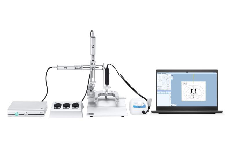 Zautomatyzowany instrument stereotaktyczny doskonale pozycjonuje głowę myszy lub szczura za pomocą automatycznego sterowania komputerowego. Integracja z systemem „Atlas” oraz intuicyjna kontrola ruchu zapewniają wysoką dokładność, precyzję w manipulacjach elektrofizjologicznych oraz w podaniach stereotaktycznych. System ten prawidłowo zabezpiecza głowę zwierzęcia w pozycji idealnie poziomej podczas wykonywanego zabiegu stereotaktycznego.
