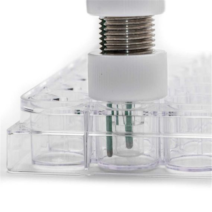 - Obsługa bez użycia rąk – Elektroda STX4 idealnie pasuje do 24-dołkowych płytek do hodowli komórkowych Transwells i może być zawieszona na tych płytkach, co umożliwia obsługę bez użycia rąk.