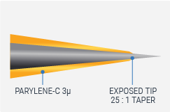 WE5PT3X.XA5 Monopolar Tungsten microelectrode - Standard Tip with Polyamide Tubing 125 µm x 5", shaft Ø 0.216 mm, tip Ø2 - 3 µm, 0.1 - 2.0 meg, for general purpose recording, 10 pcs./pk. | |