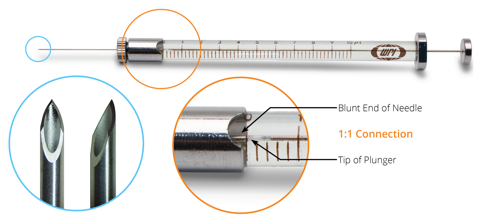 Kontrola gazoszczelności jest szczególnie istotna w zastosowaniach wymagających najwyższej dokładności i precyzji podczas podawania małych objętości płynów. Wysokiej jakości gazoszczelna konstrukcja zapewnia próżniowe uszczelnienie między strzykawką a igłą, zapewniając siłę niezbędną do przesuwania małych próbek do przodu podczas podawania i do góry podczas pobierania. Praktycznie zerowa objętość martwa strzykawki NanoFil wynika z przemyślanego mechanizmu sprzęgającego, w którym wszystkie igły WPI NanoFil™ są wprowadzane bezpośrednio do cylindra strzykawki, tworząc połączenie 1:1 z tłokiem strzykawki. Napełnianie strzykawki jest łatwe dzięki niezrównanej kontroli, wspieranej przez niezawodny, gazoszczelny system.
